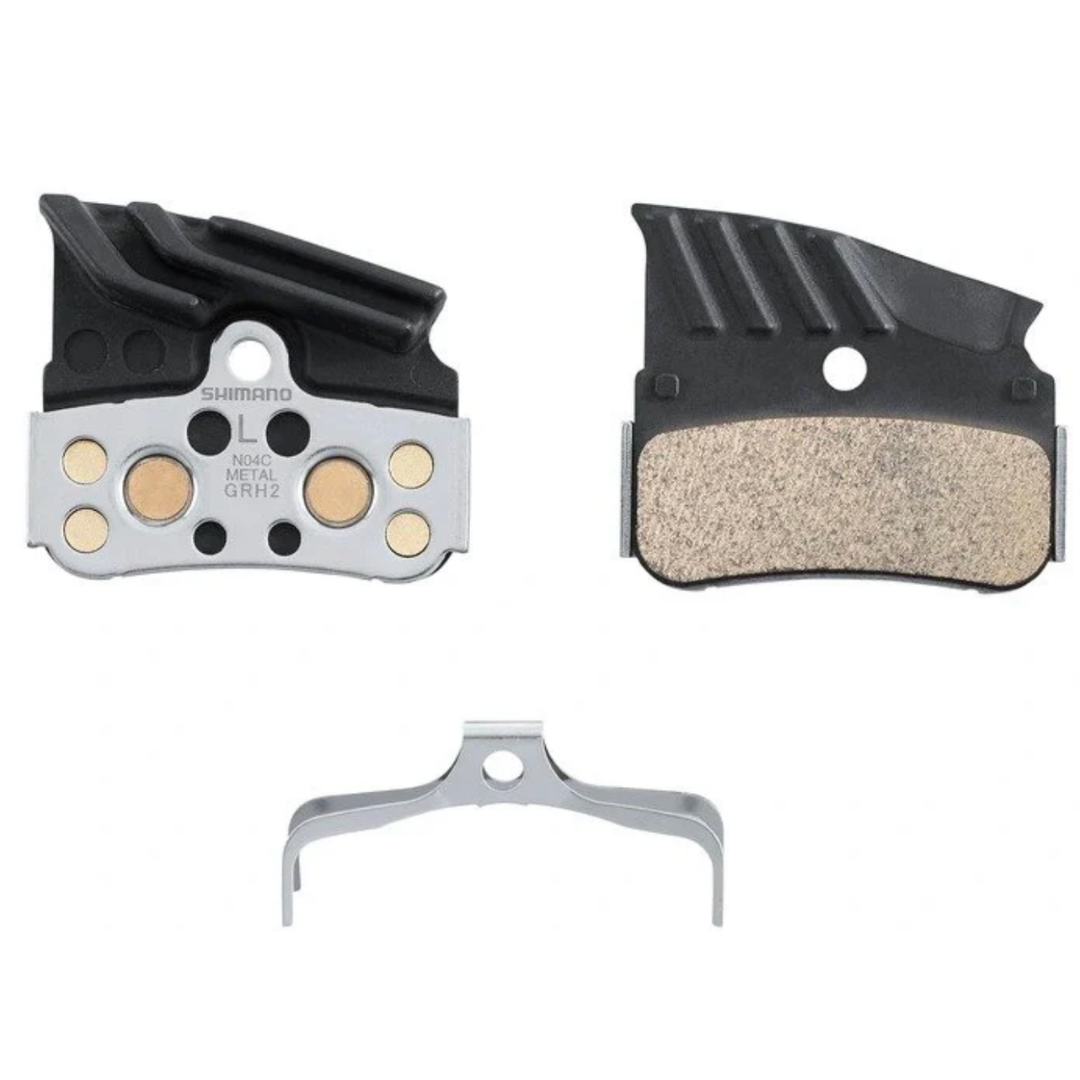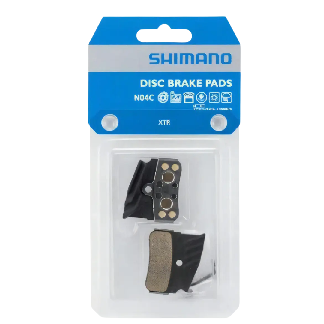 Las pastillas de freno Shimano N04C son fabricadas en metal sinterizado que garantiza estabilidad y la larga vida. Además de ello cuentan con aletas de refrigeración de Ice-Tech que disipan más eficazmente el calor generado durante la frenada. La pastilla de freno N04C es compatible con el freno de disco de 4 pistones XTR BR-M9120, así como con el XT BR-M8120 y el SLX BR-M7120.