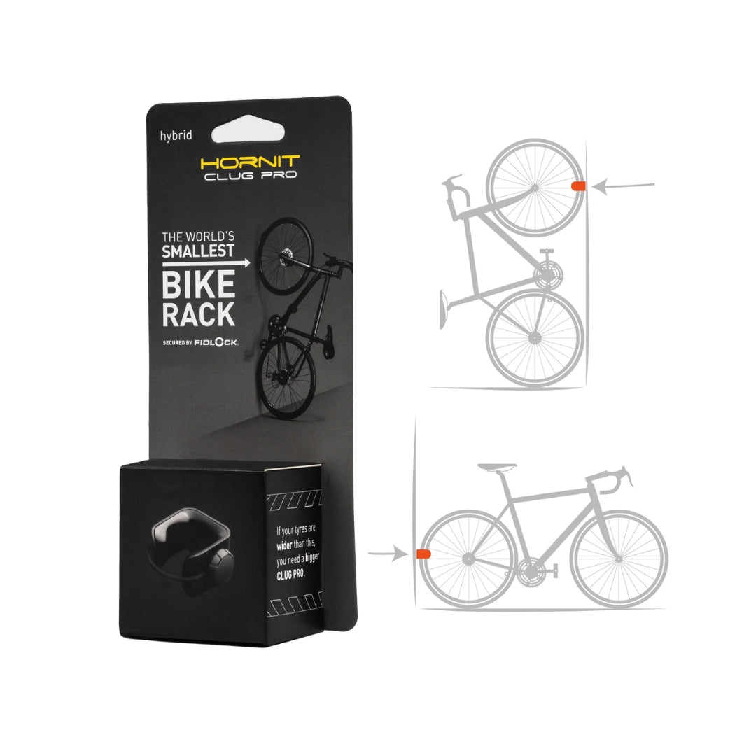 Diseñado en colaboración con FIDLOCK, el CLUG PRO utiliza un innovador sistema de imán y trinquete para garantizar que tu bicicleta esté siempre segura. Trabajando con el piso para guardar tu bicicleta vertical u horizontalmente, el CLUG PRO hybrid es adecuado para bicicletas con neumáticos de entre 33 y 43 mm de ancho. Se monta fácilmente utilizando los tornillos y tacos proporcionados en mampostería, paneles de yeso y madera.
