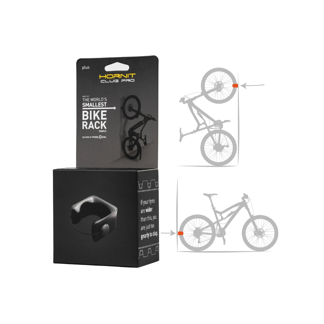 Diseñado en colaboración con FIDLOCK, el CLUG PRO utiliza un innovador sistema de imán y trinquete para garantizar que tu bicicleta esté siempre segura. Trabajando con el piso para guardar tu bicicleta vertical u horizontalmente, el CLUG PRO plus es adecuado para bicicletas con neumáticos de entre 70 y 81 mm de ancho. Se monta fácilmente utilizando los tornillos y tacos proporcionados para mampostería y madera.