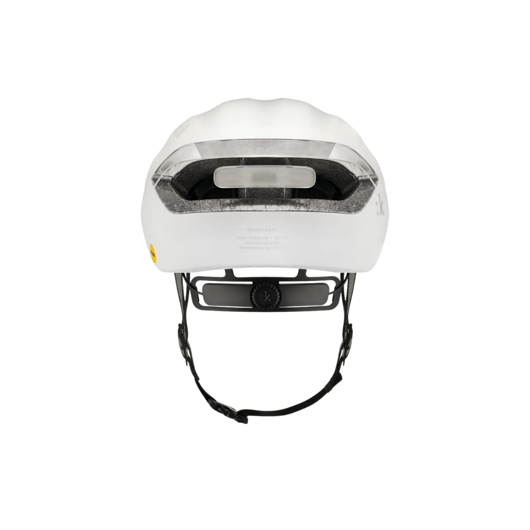 Kudo Aero es un casco de ciclismo de alto rendimiento, rápido, seguro y eficiente que presenta un ajuste totalmente ajustable, luz integrada, ventilación mejorada y sistema MIPS Air Node.