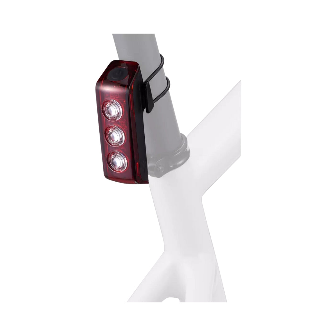 Con sus 250 lúmenes, la luz trasera Flux 250R es visible a más de 1 km y medio en las condiciones diurnas con más iluminación.