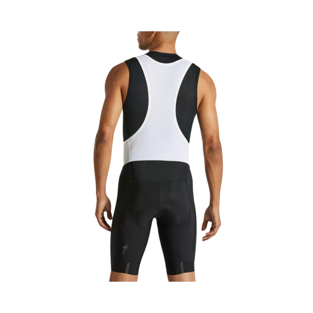 Specialized diseñó un tirante abierto y una fabricación para mantener las calzas en su lugar sin constreñir la parte superior del cuerpo. Los tirantes elásticos son súper afelpados y suaves contra la piel, y se adaptan a torsos más altos con facilidad. Los puños de tela con infusión de silicona, mientras tanto, brindan una sujeción suave y segura en las piernas para garantizar un ajuste perfecto y sin cambios mientras pedaleas.