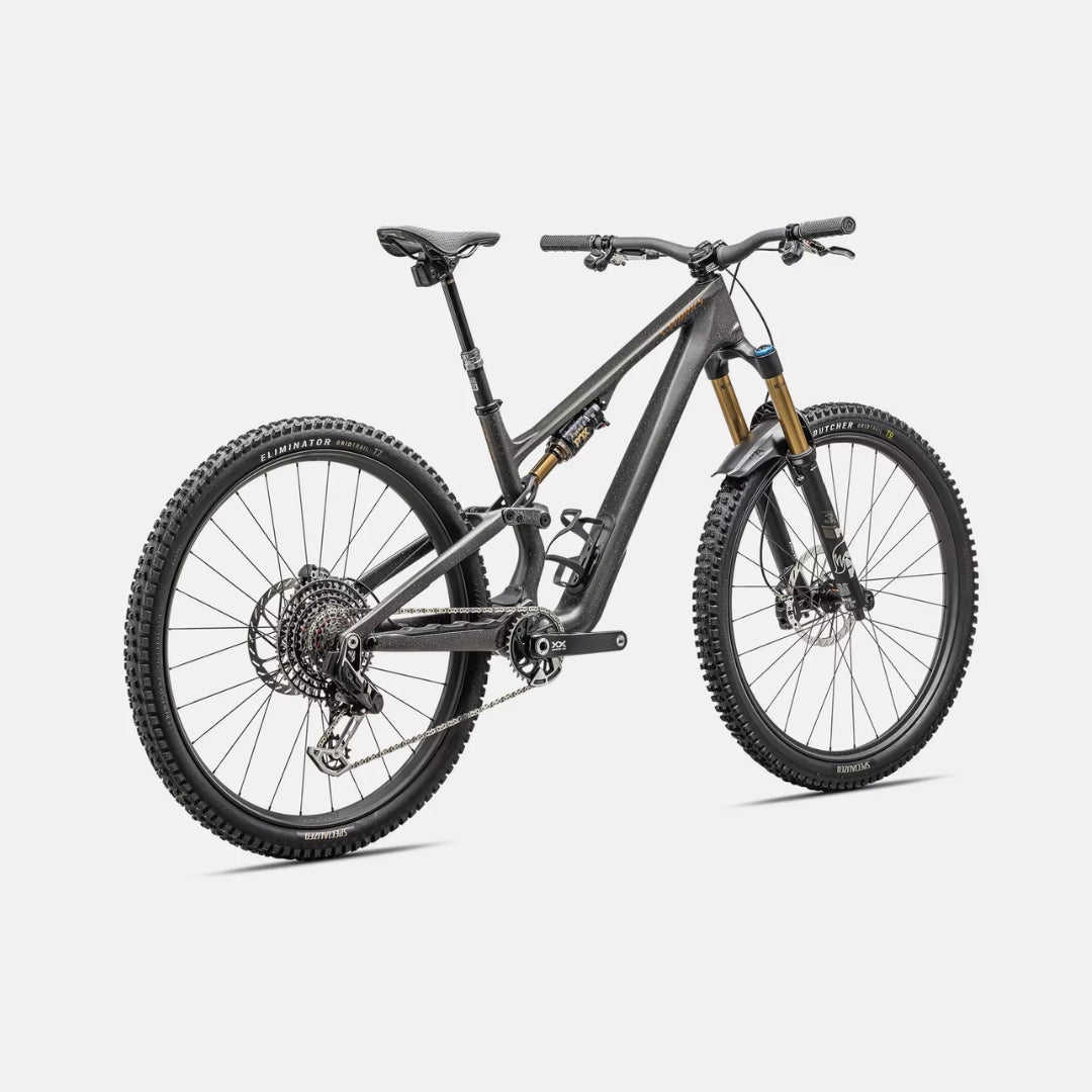La tecnología de suspensión FOX FLOAT Factory con patente pendiente Specialized GENIE proporciona el máximo agarre y tracción que se encuentran en un muelle lineal, la prevención de hacer tope que se encuentra en un amortiguador de aire progresivo, y la capacidad de ajustar el soporte a mitad y final del recorrido de forma independiente. Modo abierto y firme de 2 posiciones altamente ajustable con ajuste de compresión de modo abierto de 3 posiciones.