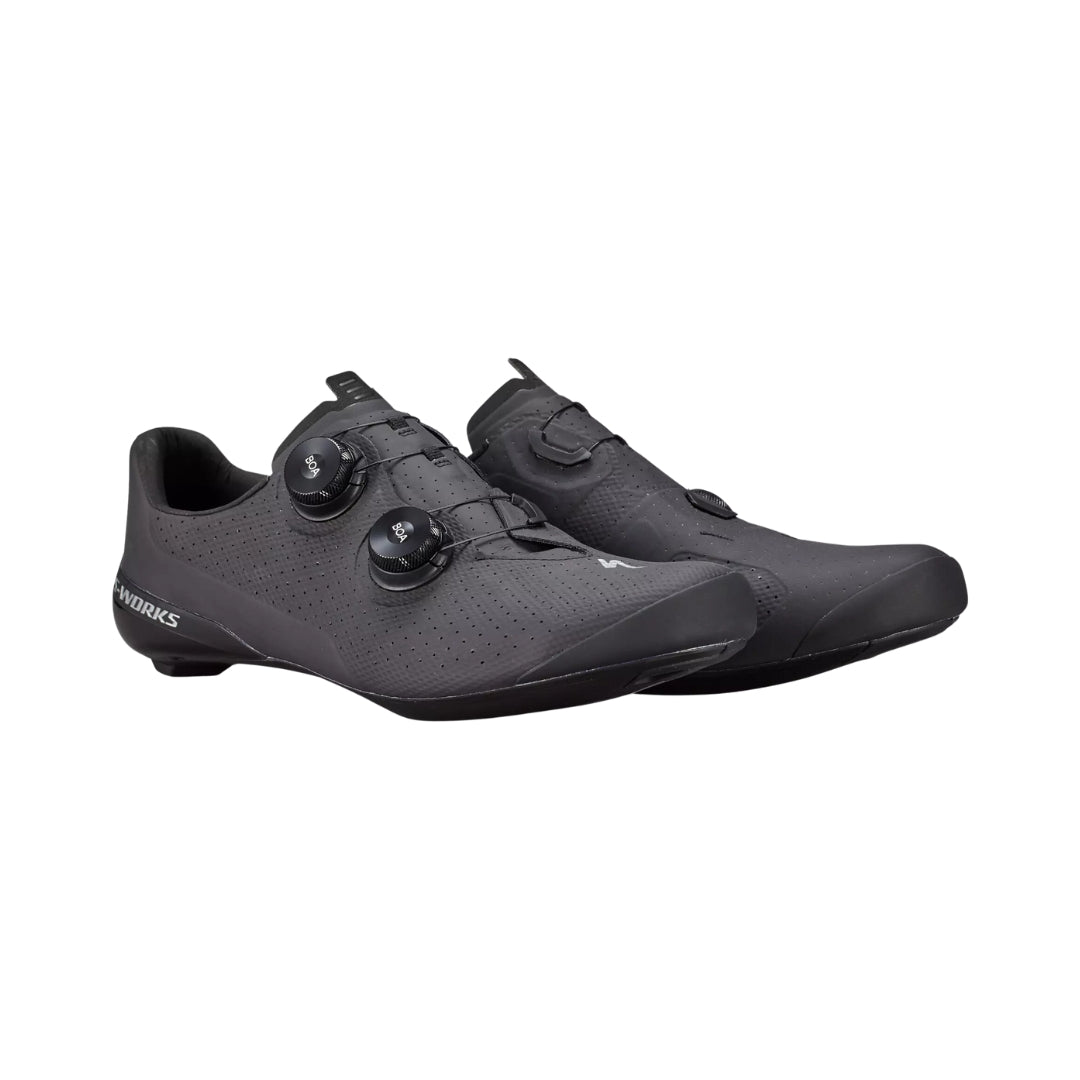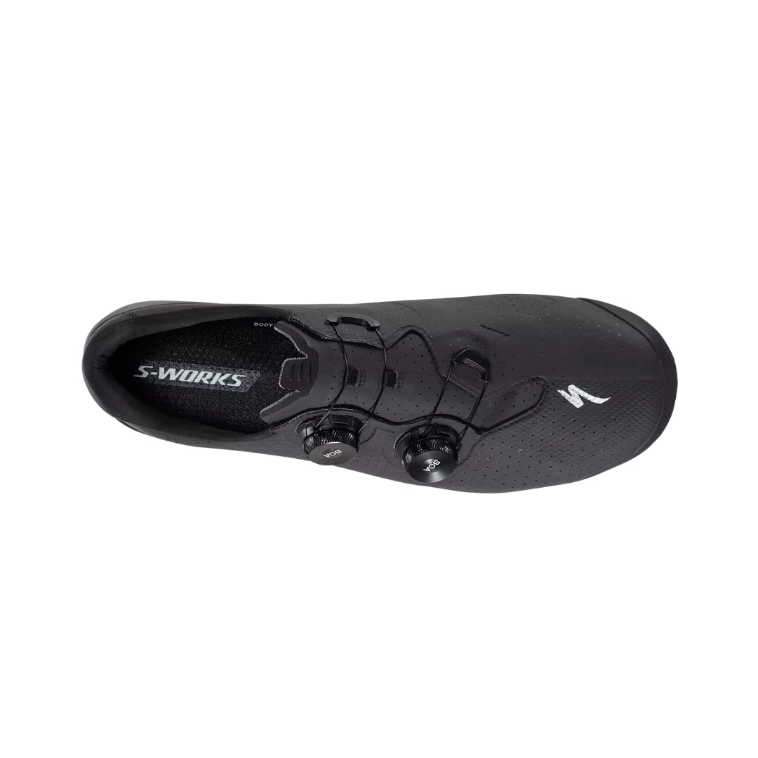 Aprovechando la ciencia de los datos, Specialized ha perfeccionado cada detalle de la parte superior de las S-Works Torch para mejorar el ajuste y el rendimiento. El cable BOA® está desplazado hacia abajo y en ángulo, lo que evita que se levante la parte superior del pie y proporciona una estructura que aumenta la potencia, a la vez que elimina la presión o los pinchazos no deseados. Los materiales flexibles permiten el movimiento natural del pie donde se necesita para la comodidad, mientras que el refuerzo zonal basado en datos mantiene el pie firme para una entrega de potencia nítida y una eficiencia óptima.