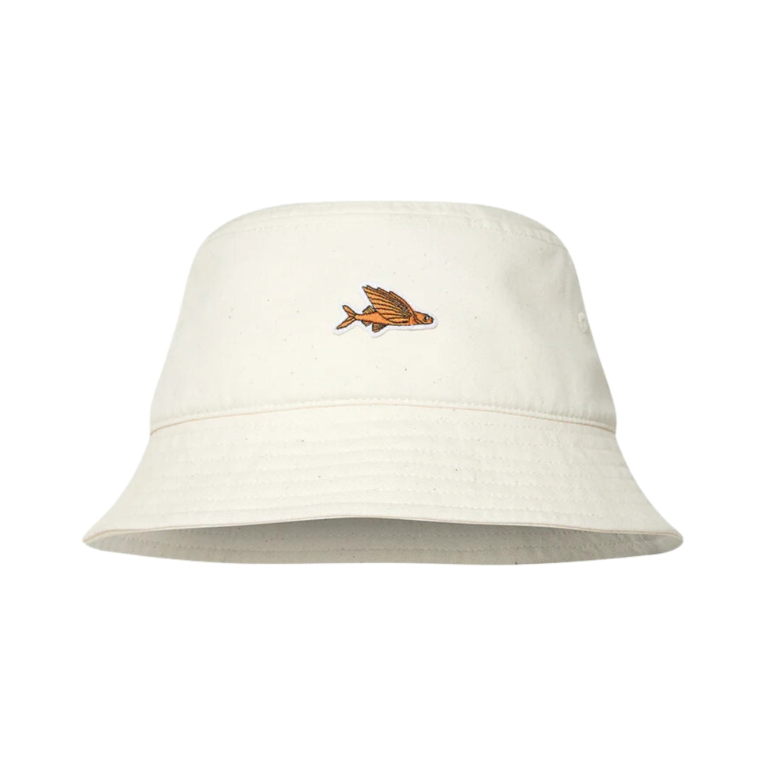 Un sombrero de pescador clásico creado en Europa para aventuras cercanas y lejanas. Construido con un forro interior y 100% algodón orgánico, el sombrero también presenta el diseño de pez volador de Café Du Cylciste bordado.